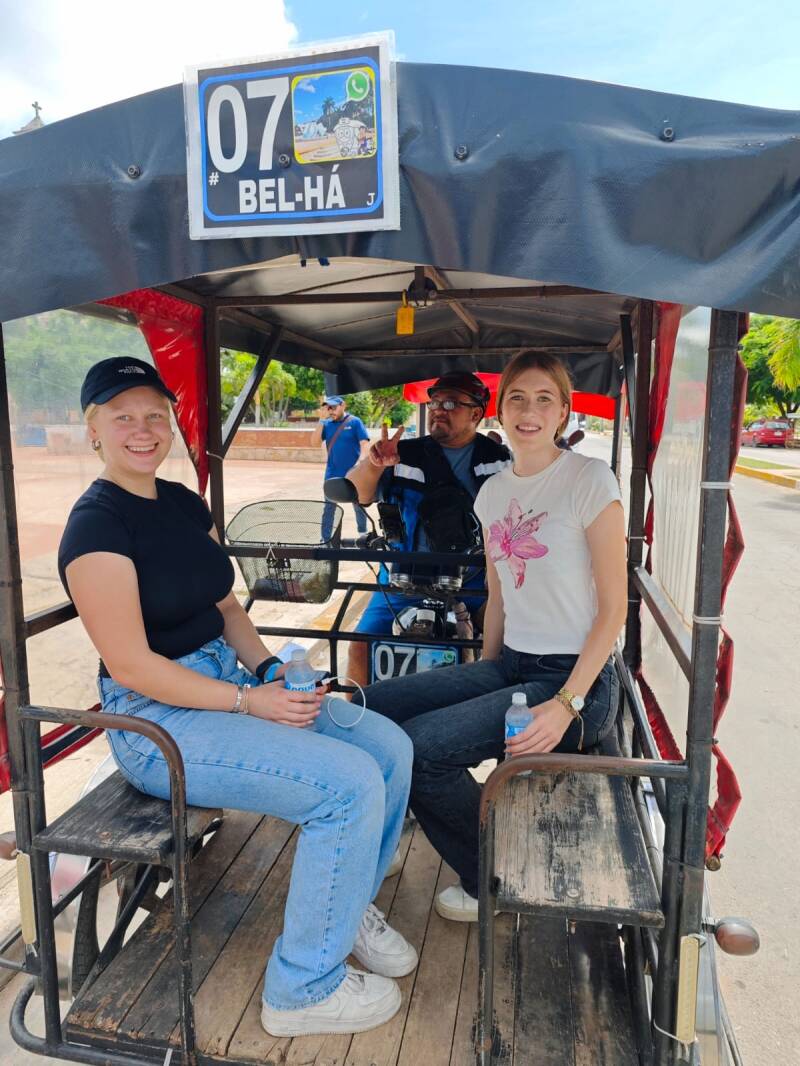 Lähdimme liikkeelle aikaisin aamulla noin viden aikaan. Matkalla nukuimme ja pelasimme myös vähän korttia. Ensiksi matkustimme Hecelchakániin, jossa söimme aamupalaksi tacoja. Meille opetettiin myös muutamia sanoja mayan kielellä.